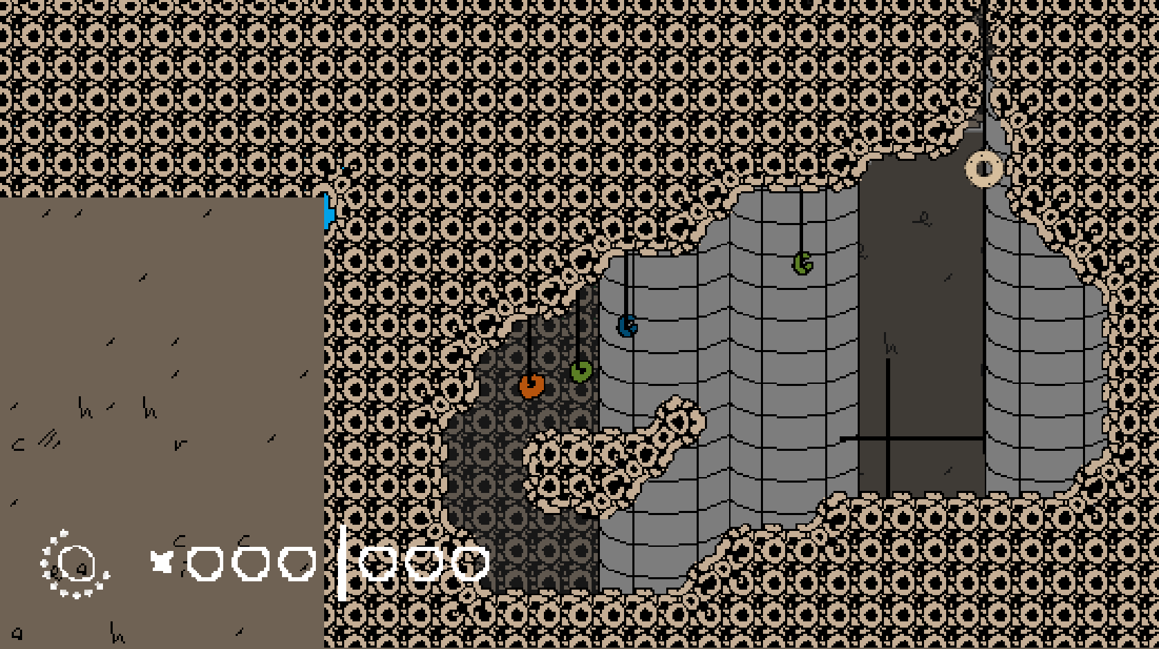 Detecting the rope tile underneath a character moving at 200 pixels per second is one thing, but detecting the tile in front of a projectile moving at 1000 pixels per second is another beast entirely. I was also running out of steam at this point in the jam, so my solutions to things were getting pretty unhinged.